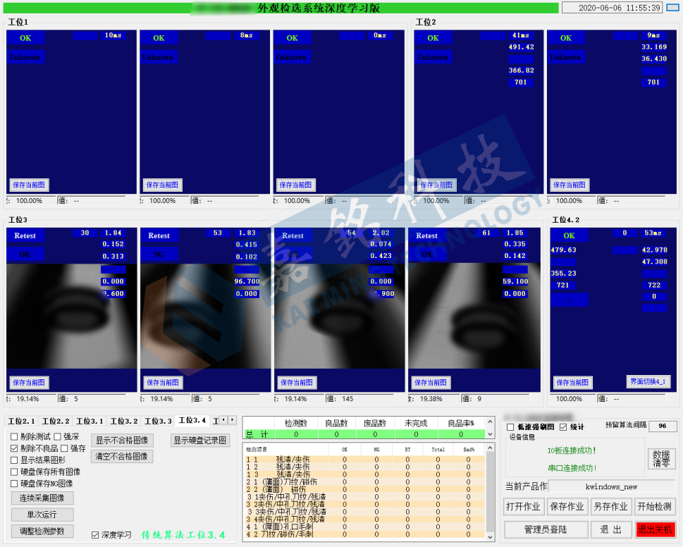 汽車(chē)廠為了遞減人力工時(shí)、返修工時(shí),提高車(chē)輛的檢出率,汽車(chē)廠裝配車(chē)間根據(jù)各自產(chǎn)線的情況提出了檢測(cè)需求,底盤(pán)檢測(cè)的類(lèi)型主要分3種:螺栓/螺母無(wú)漏緊固、卡扣無(wú)漏裝配、保持夾無(wú)漏裝配;其中不同車(chē)型需要檢測(cè)的點(diǎn)數(shù)也不同,檢測(cè)的難度較大。嘉銘科技針對(duì)汽車(chē)廠裝配車(chē)間的質(zhì)檢要求,針對(duì)性研發(fā)出汽車(chē)關(guān)鍵零部件智能識(shí)別檢測(cè)工作站,有效解決汽車(chē)廠裝配車(chē)間的痛點(diǎn)。汽車(chē)關(guān)鍵零部件智能識(shí)別檢測(cè)工作站特點(diǎn):1、本工作站采用多相機(jī)組合的方式對(duì)汽車(chē)底盤(pán)進(jìn)行檢測(cè),檢測(cè)范圍大,檢測(cè)范圍可達(dá)1.9m*4.8m。2、車(chē)體寬度方向通過(guò)多個(gè)相機(jī)的拍照合成車(chē)體寬度方向的圖片,在車(chē)體運(yùn)動(dòng)過(guò)程合成車(chē)體長(zhǎng)度方向圖片從而實(shí)現(xiàn)整個(gè)車(chē)底的大區(qū)域的檢測(cè)。3、特征定位方式實(shí)現(xiàn)車(chē)體位置的感知,即使車(chē)體的運(yùn)動(dòng)速度變化,也能準(zhǔn)確捕捉到車(chē)體相對(duì)于視覺(jué)系統(tǒng)的相對(duì)位置,從而實(shí)現(xiàn)準(zhǔn)確檢測(cè)。4、系統(tǒng)與生產(chǎn)管理系統(tǒng)通過(guò)網(wǎng)絡(luò)連接,自動(dòng)獲取檢測(cè)車(chē)輛的車(chē)型及出廠號(hào)等車(chē)輛信息,啟用對(duì)應(yīng)的檢測(cè)程序,檢測(cè)記錄與車(chē)輛信息綁定,便于追溯車(chē)輛生產(chǎn)信息。汽車(chē)關(guān)鍵零部件智能識(shí)別檢測(cè)工作站有效解決汽車(chē)廠底盤(pán)裝配質(zhì)檢的問(wèn)題,提高底盤(pán)裝配質(zhì)檢的效率,降低返工率提升生產(chǎn)利潤(rùn),本工作站適用于各個(gè)行業(yè)的生產(chǎn)線上在線檢測(cè)、異常實(shí)時(shí)告警應(yīng)用或剔廢應(yīng)用,防止因工人疏忽或設(shè)備異常時(shí),導(dǎo)致產(chǎn)品的漏、錯(cuò)、多加工等現(xiàn)象,以確保產(chǎn)品的品質(zhì)。